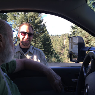 Following directions to the new campsite James had arranged for us, a wrong turn was made. No worries, the Park Ranger was there